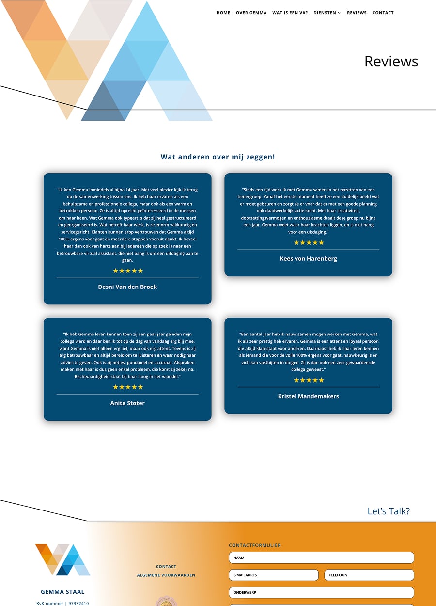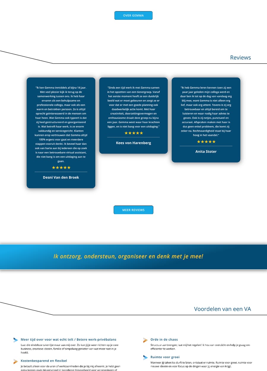 O site da Virtual Assistant Gemma Staal é o primeiro site em idioma holandês desenvolvido pela Sailor Mobile Solutions. Gemma Staal é uma parceira de longa data que recentemente procurou a Sailor com a demanda de desenvolvermos o site institucional para divulgação de seus serviços. Tal site tem como foco principal o público local dos Países Baixos e países vizinhos da Europa.