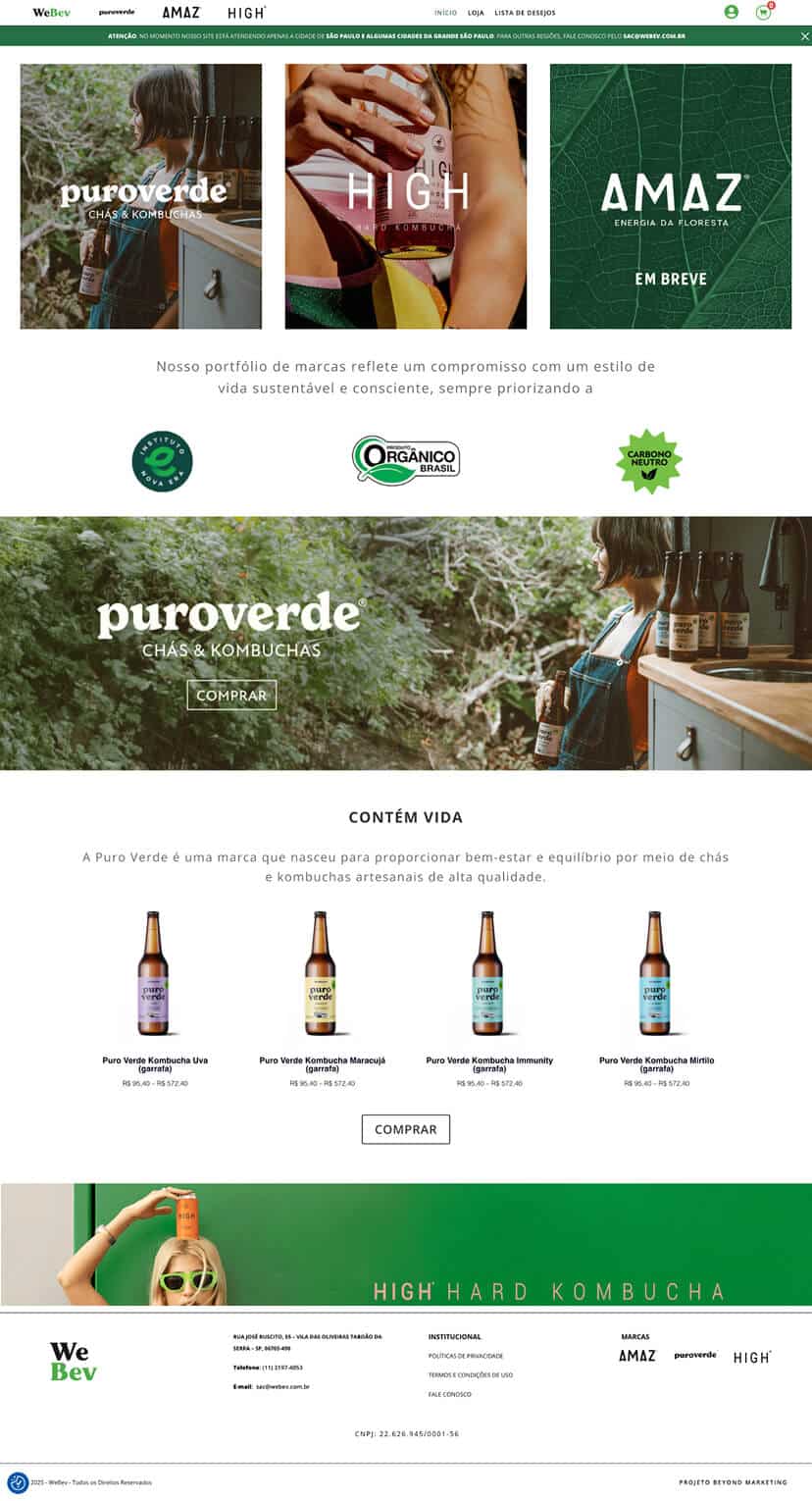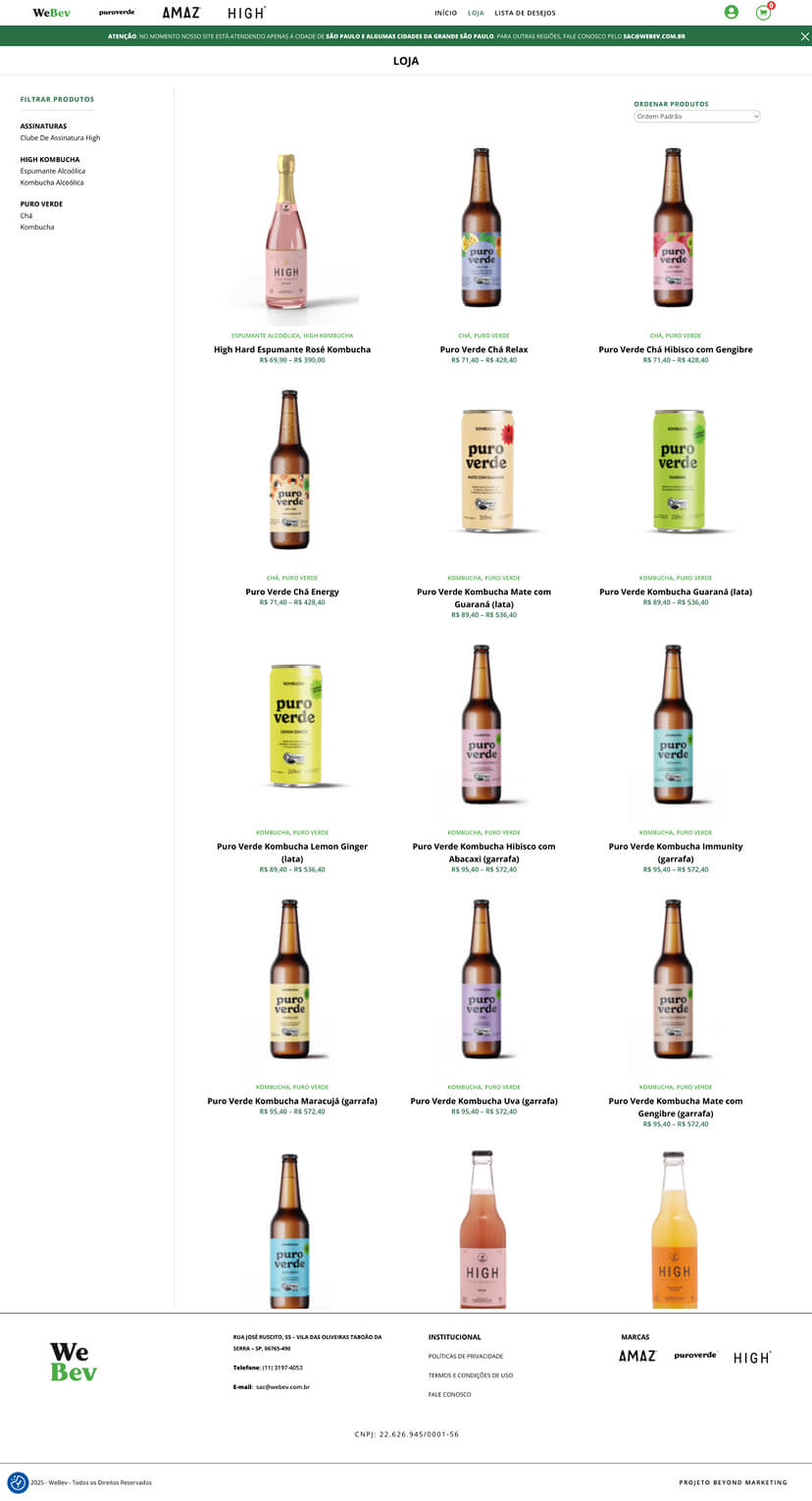 O site da Webev (FutureBev), cliente da agência Beyond Marketing parceira da Sailor, faz parte do projeto de 4 sites contratados por eles, sendo 3 institucionais das marcas e esse aqui sendo a loja virtual que reuniria todos os produtos de todas as marcas.
